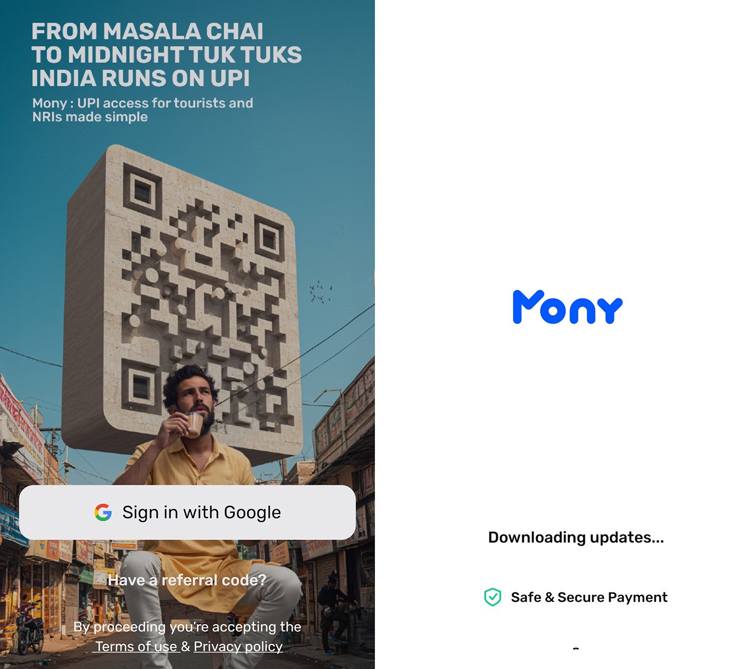 2022年あたりのこと。インド政府の中で、短期滞在の外国人にもQR決済を使えるようにしよう!と言う動きがあったらしく、つい最近、銀行口座を持っていない外国人でも、インドのQRコードであるUPIが使用できるアプリ、Monyが出現しました。Monyを使用することで、外国人でもインド民が便利に使っているQR決済が使用できるようになるとのこと。