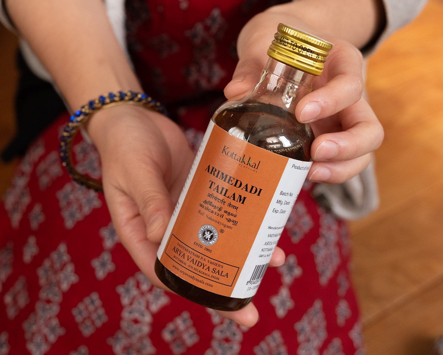 さて、紹介させていただいた口腔ケア用品のうち、いくつかはティラキタでも取扱がございます。こちら、アリメダディタイラムは、オイルうがい用のアーユルヴェーダ油です。