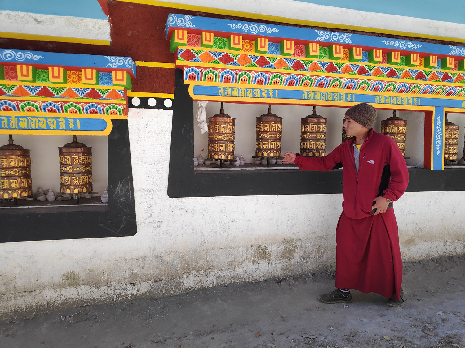 僧院の中にはマニ車があって、参拝に来た人々がくるくると廻していました。
