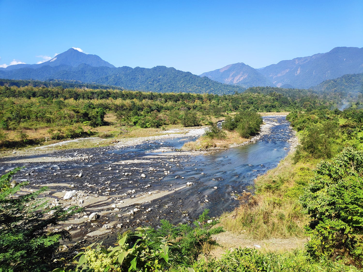 国境に囲まれた地帯ですので、国境は至る所にあります。この写真はブータンとの国境の川。