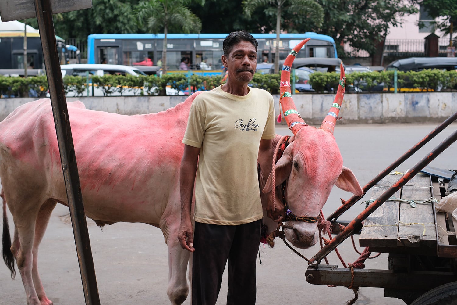 可愛くピンクに塗られた牛ちゃんもいました。おっちゃんのお顔も素敵ですが、牛ちゃんも大好きです。この2人の組み合わせかわいいな♪