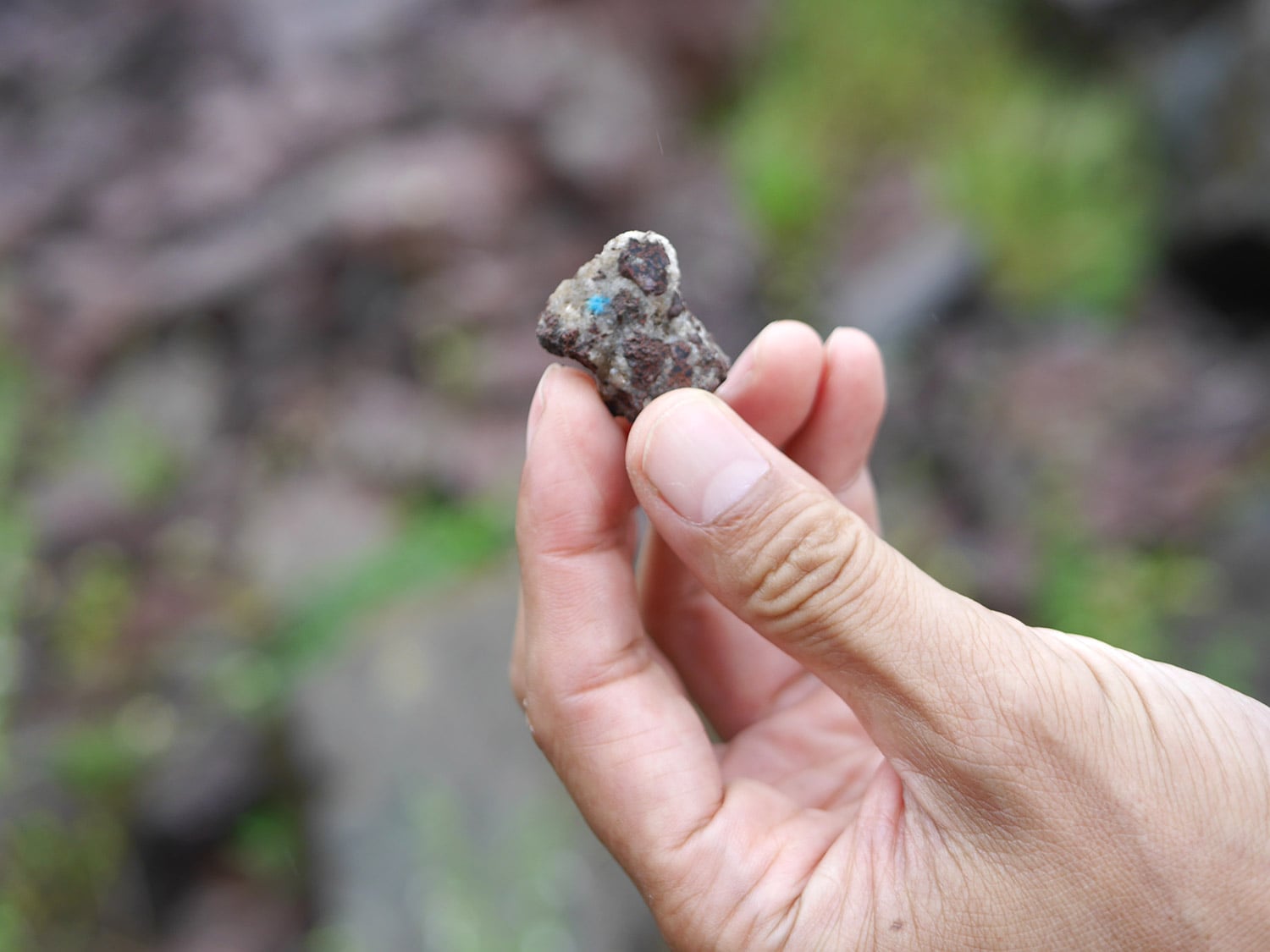 岩の中に青い結晶があるのがわかりますでしょうか?